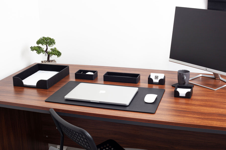 Loft leather desk pad is made of high quality artificial leather in 5 pieces. Every piece of the desk set has been carefully prepared. Loft luxury leather desk sets are produced with technology and handcraft. There is a magnetic lath...
